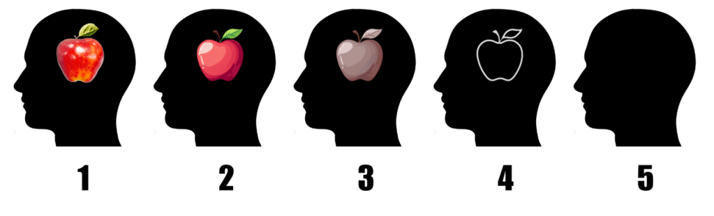 Les personnes présentant une aphantasie complète ne voient pas de pomme. Ne peuvent pas décrire de couleur ou de forme, ou seulement avec des mots : on sait qu’une pomme peut être jaune, verte, rouge, mais pas d’image en tête. Pas de pomme particulière.